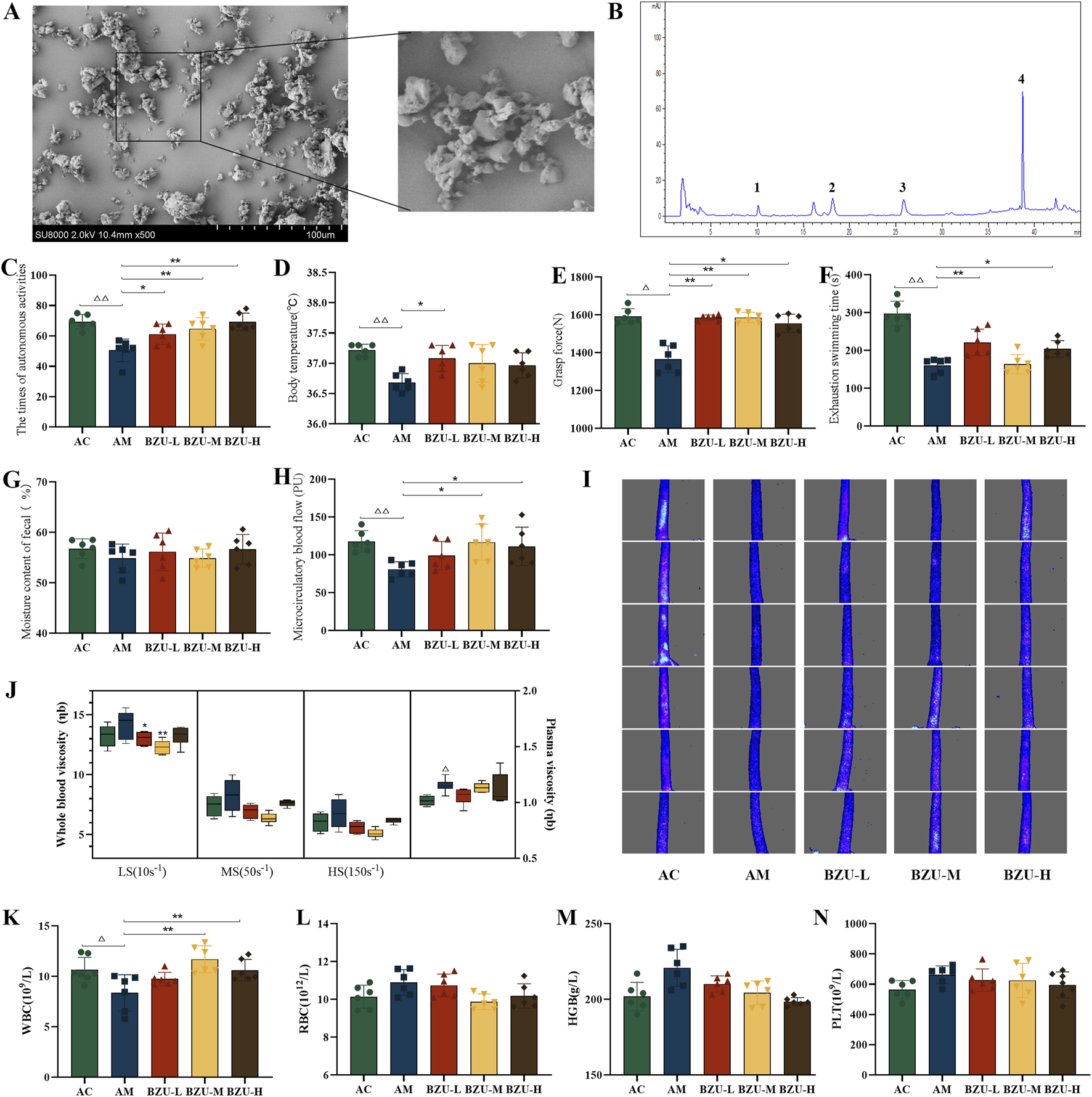 Raw herbs were purchased from Zhejiang Intel Pharmaceutical Co., Ltd. (Zhejiang, China). A voucher specimen was made and deposited at the herbarium with voucher specimen number 2010018. The ultrafine powder of BZ was processed by Jinan Dawei Machinery Co., Ltd. and passed through a 300-mesh sieve to obtain drugs with a particle size of <48 μm. A distilled water solution was prepared by dissolving the ultrafine powder in distilled water at 4°C.