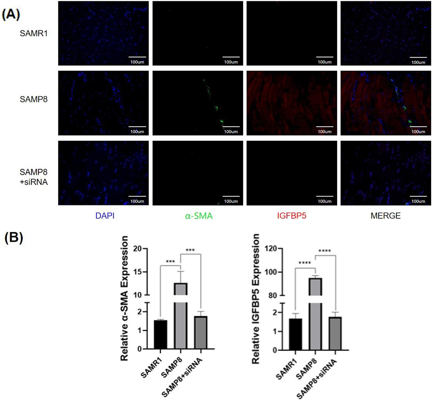 In the present study, several limitations should be acknowledged. Firstly, naturally aged mice were not utilized, which may limit the direct relevance of the findings to natural aging processes. The relationships among SAMP8, SMAR1, and SAMP8 with siRNA require further investigation to elucidate their interactions and potential synergistic effects. Furthermore, in in vivo models, the injection of siRNA may potentially impact other cells within the skeletal muscle, not just limited to NOR-10. This necessitates further validation in subsequent studies. Additionally, conditional knockout mice were not employed, which could have provided more precise insights into gene-specific functions and their roles in the studied processes. Future research should address these limitations to enhance the robustness and applicability of the findings, and explore tissue-specific IGFBP5 regulation and its interplay with other fibrogenic factors to develop precision therapies.