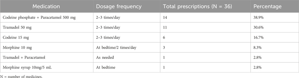 With participants’ consent, prescriptions from all 30 participants were collected and analyzed to gather information on both opioid and non-opioid analgesics. A simple descriptive analysis of the collected prescription data was then performed.