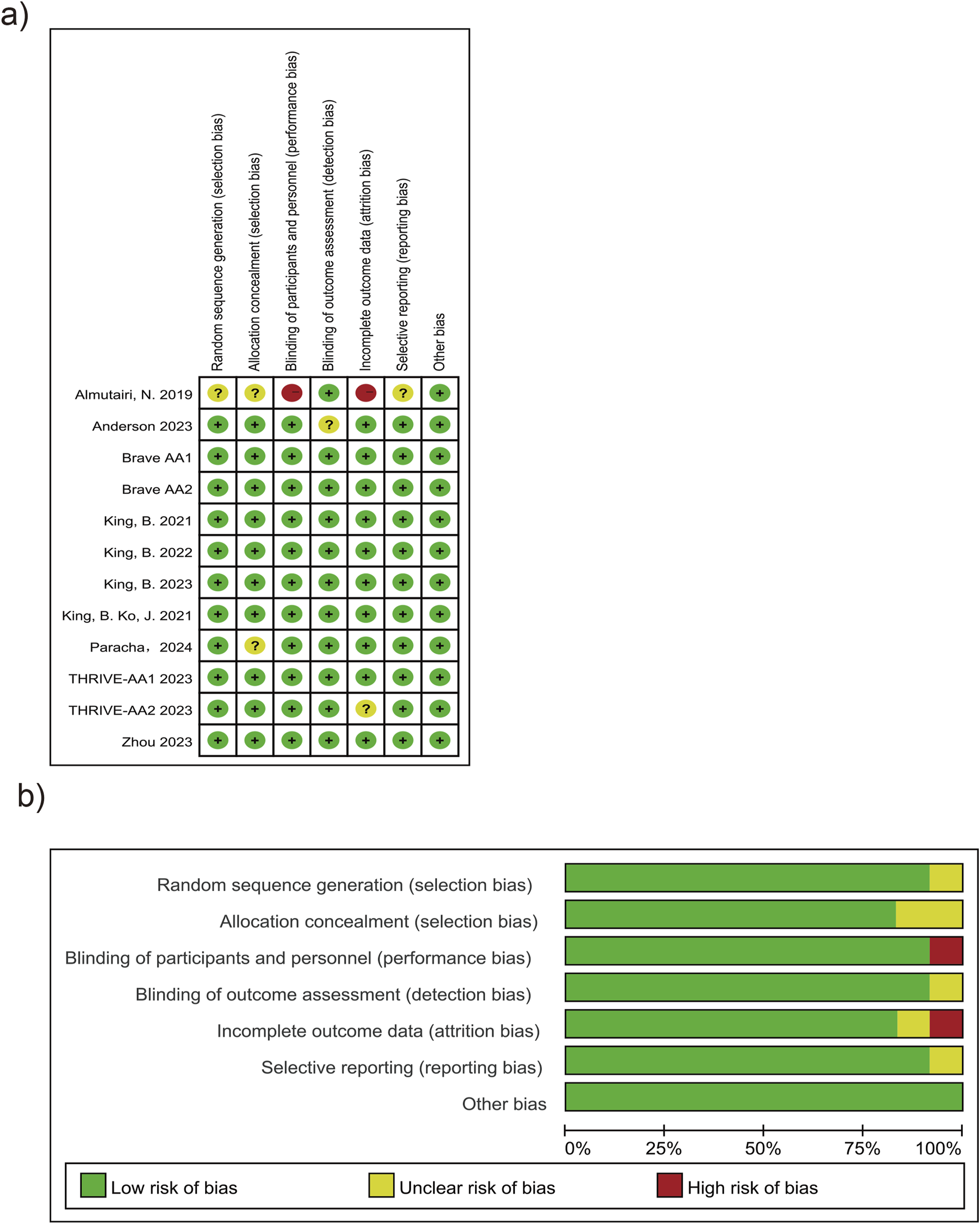 Risk of bias graph and summary. (a) Risk of bias graph. (b) Risk of bias summary.