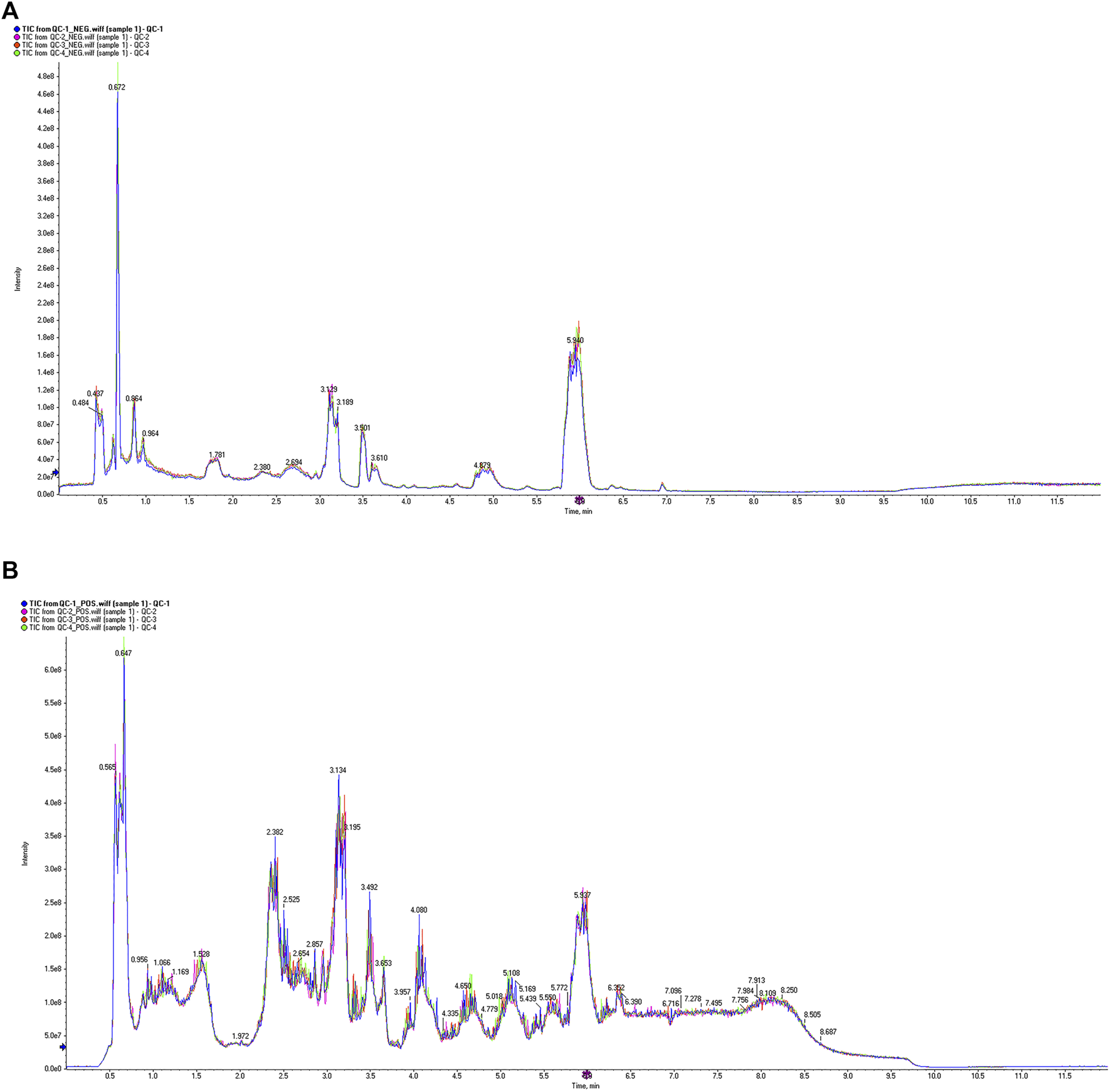 Fasting blood samples were collected in 5 mL Vacutainer tubes containing ethylenediaminetetraacetic acid (EDTA) as a chelating agent. The samples were centrifuged at 14,000 × g for 15 min at 4°C, and the supernatant was collected. Plasma samples (150 µL each) were stored at −80°C until further analysis. Before analysis, the samples were thawed at 4 °C. Each sample (100 µL) was mixed with 400 µL of cold methanol/acetonitrile (1:1, v/v) to precipitate proteins. The mixture was centrifuged for 20 min (14,000 × g, 4°C), and the supernatant was dried in a vacuum centrifuge. For LC-MS analysis, the samples were reconstituted in 100 µL of acetonitrile/water (1:1, v/v), centrifuged at 14,000 × g for 15 min at 4°C, and the supernatant was injected into the system. QC samples are made from a mixture of samples to be tested and are tested on the machine before, during and after the LC-MS/MS injection of the samples to be tested.