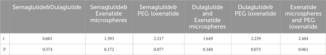 The results indicated minimal differences in the safety profiles of the four drugs, with the primary distinctions observed in hypoglycemic efficacy and cardiovascular benefits (Teng et al., 2024; Petrova et al., 2024). Dulaglutide and semaglutide, which offer cardiovascular benefits (Yanlan et al., 2022), demonstrated significant pharmacological and efficacy advantages. Conversely, exenatide microspheres excelled in terms of economic value. Based on these findings, dulaglutide and semaglutide were categorized as “strongly recommended”, whereas exenatide microspheres and PEG loxenatide were classified as “weakly recommended.” Medical institutions may retain or phase out the latter two drugs based on specific clinical needs.