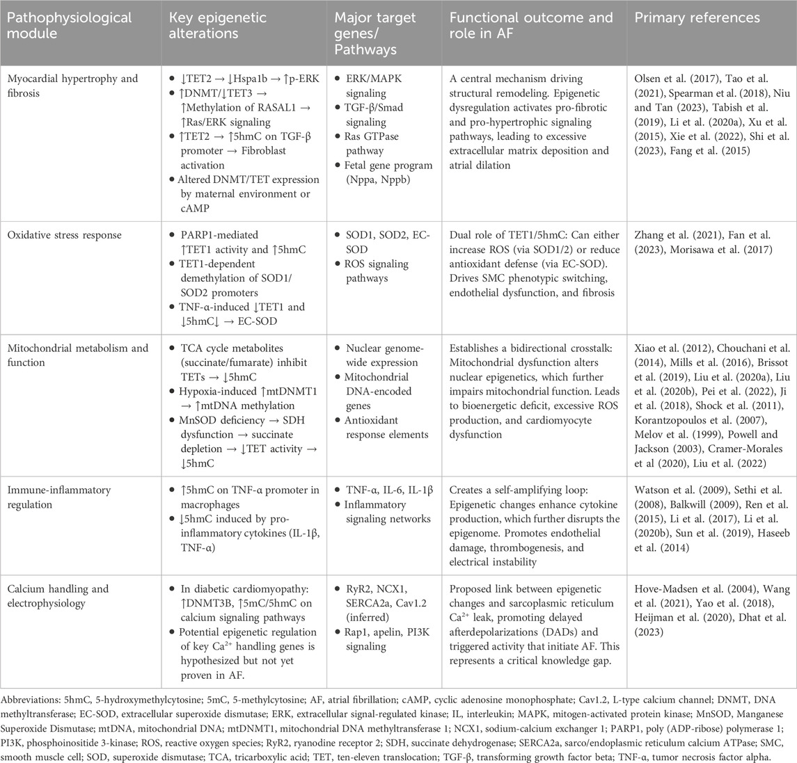 Given these connections, it is plausible that DNA hydroxymethylation may participate in the pathogenesis of AF. This review explores potential mechanisms through the following aspects (Table 1; Figure 1).
