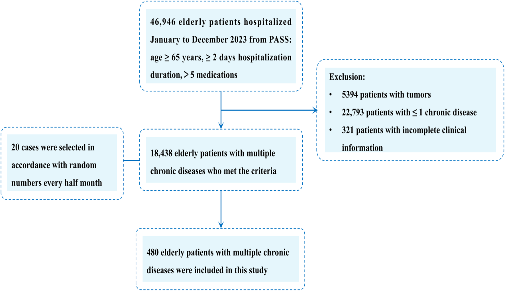 With the continuous development of society, China has entered the stage of accelerated population aging, and the demand for social services in this stage is increasing, especially medical services. Chronic diseases now account for 88.5% of mortality in China, with 55%–98% of elderly people affected. Notably, 50%–80% of elderly patients present with multimorbidity requiring complex medication regimens (Abdu et al., 2025; Dong and Zheng, 2022; Gao et al., 2024). The proportion of polypharmacy among elderly chronic disease patients in the community in China ranges from 33.1% to 75.3% (World Health Organization, 2019), and the proportion of polypharmacy among inpatients ranges from 48.0% to 95.7% (Zeng et al., 2019). Polypharmacy (≥5 medications) can increase the risk of Adverse Drug Event (ADE) by 88% (Maher et al., 2014). This medication complexity may lead to an increase in drug-related problems (DRPs), poor patient adherence to medication, increased readmission rates, and prolonged hospital stays (Ulley et al., 2019). Hu et al. emphasize the need to prioritize actions to benefit this particularly vulnerable population (Hu et al., 2020).