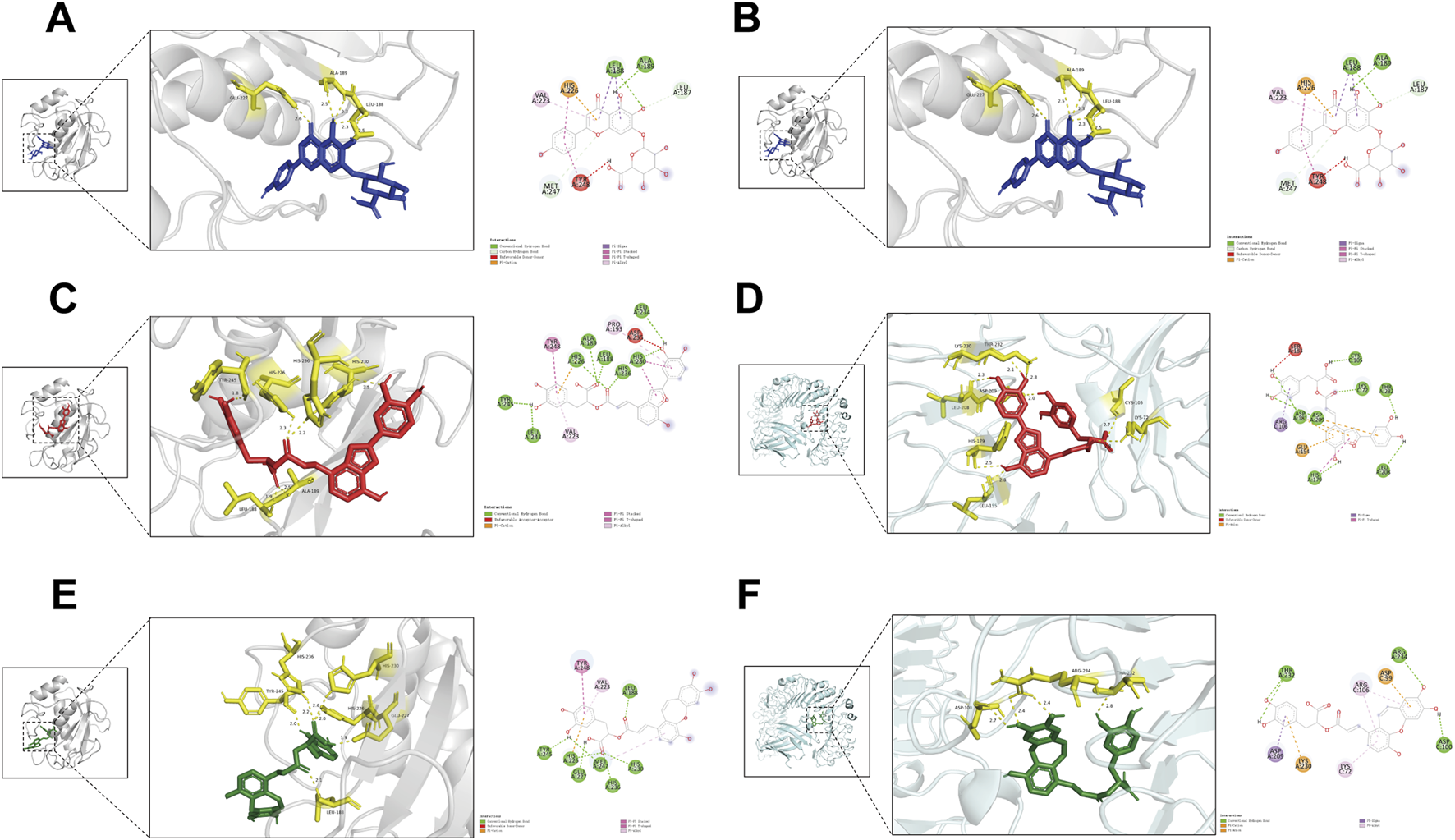 Molecular docking was performed using AutoDock Vina (version 1.5.7) (Trott and Olson, 2010) to predict ligand-target interactions. Crystal structures of target proteins were retrieved from the Protein Data Bank (PDB) (https://www.rcsb.org/), while 3D ligand structures were batch downloaded from the PubChem database (https://pubchem.ncbi.nlm.nih.gov/) using PubChemPy in Python (version 3.11.7). Docking results were visualized and analyzed using PyMOL (version 2.4.0) and Discovery Studio (version 2019).