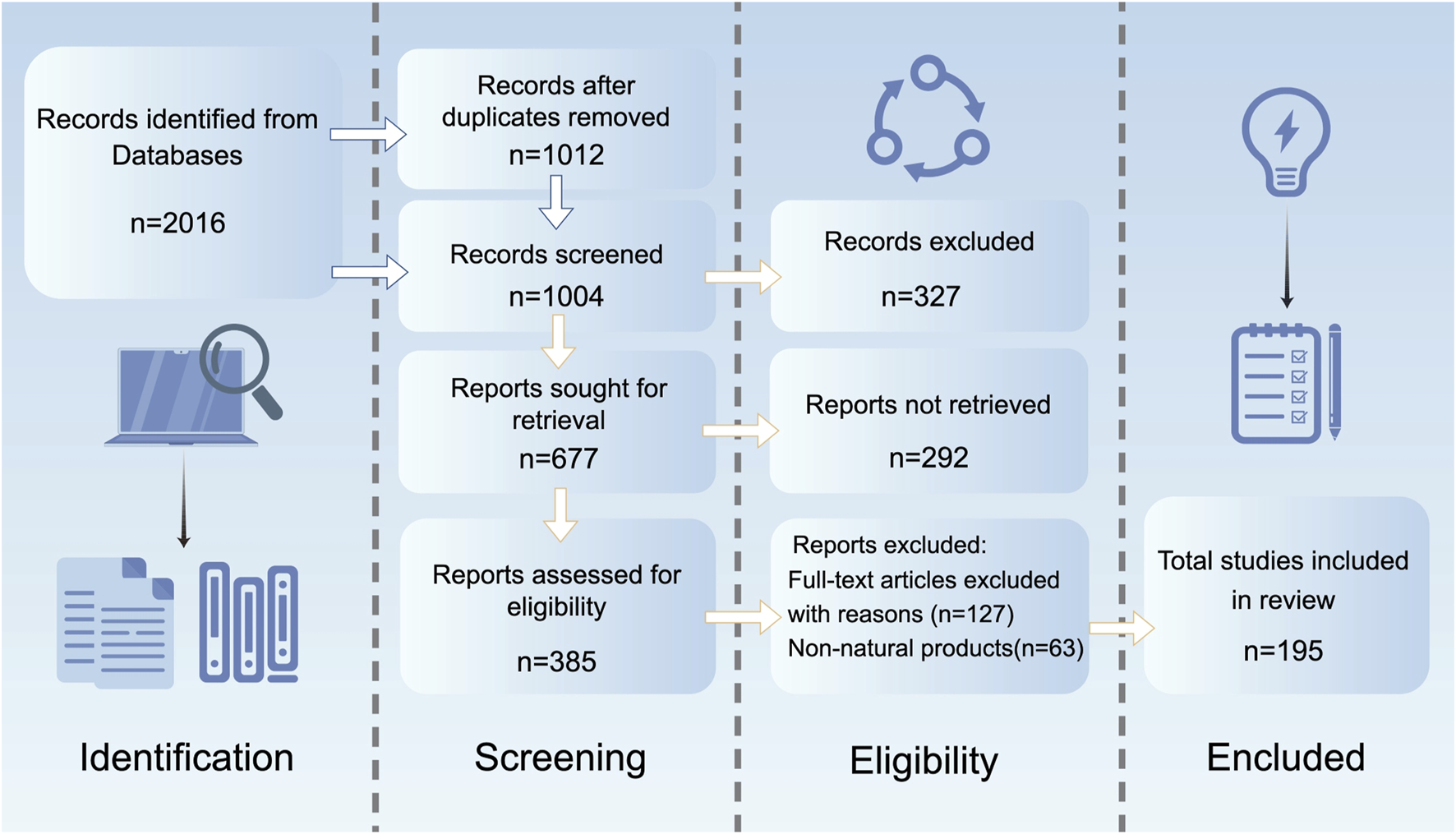 This study adheres to the Preferred Reporting Items for Systematic Reviews and Meta-Analyses guidelines, conducting a systematic search of studies related to NPs intervening in MDD via epigenetic mechanisms. A systematic search was conducted in PubMed, Web of Science, Embase, and ScienceDirect for studies published from January 2000 to March 2025. The search strategy combined Medical Subject Headings terms and free-text words, including “epigenetic modification,” “DNA methylation,” “histone acetylation,” “non-coding RNA,” “natural products,” “antidepressant,” “depression,” “herb,” “herbal medicine,” “small-molecule drugs,” “flavonoids,” “terpenoids,” and “saponins,” connected through Boolean operators (AND/OR). Inclusion criteria were: ①original research articles published in English; ②studies based on animal or cellular models of MDD; ③investigations clearly exploring the molecular mechanisms by which NPs exert antidepressant effects through epigenetic pathways such as DNA methylation, histone modifications, and non-coding RNA. Exclusion criteria included: ①non-English literature; ②reviews, conference abstracts, case reports, and other grey literature; ③duplicate publications; ④studies not involving NPs or failing to specify epigenetic regulatory mechanisms (e.g., those only describing behavioral outcomes or changes in monoamine neurotransmitters); ⑤interventions involving synthetic drugs or compounds not derived from natural sources. Two researchers independently conducted the literature screening, initially excluding studies that clearly did not meet the criteria based on titles and abstracts. Subsequently, they performed a full-text review of the remaining articles and resolved discrepancies through cross-checking. Ultimately, 189 articles were included for systematic analysis (Figure 1).