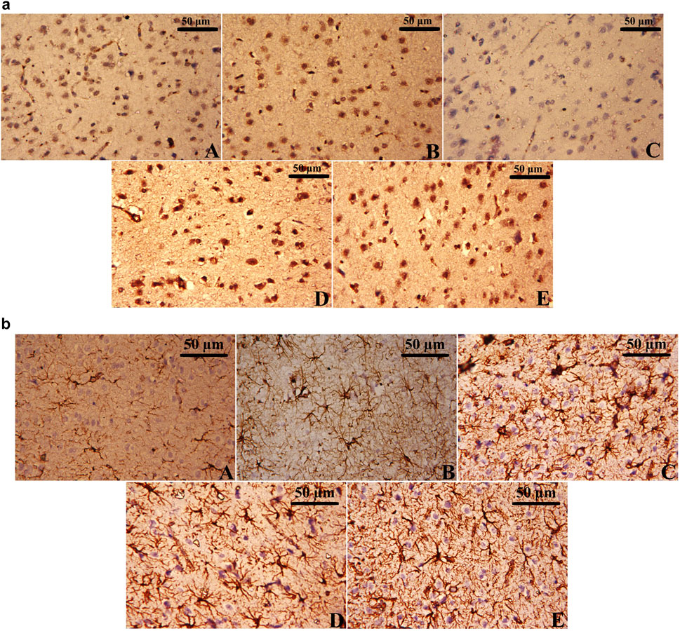 The expression levels of inflammatory parameters in cerebral cortex tissue homogenate were quantified by rat ELISA kits (Novus Biologicals, Centennial, CO, United States) including NF-κB (Cat. No.: NBP3-42721), TNF-α (Cat. No.: NBP1-92681), IL-1β (Cat. No.: NBP1-92702), and IL-6 (Cat. No.: NBP1-92697).