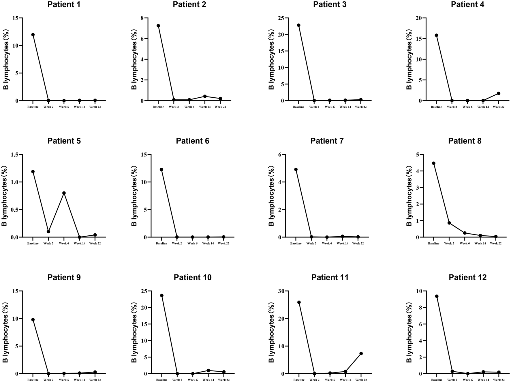 The details of B lymphocytes in patients receiving RTX Therapy.