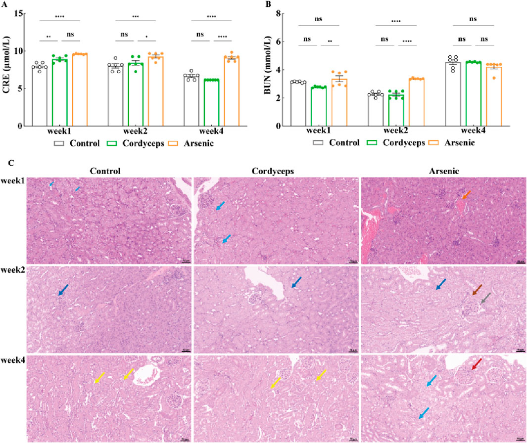 3.5 Wild Cordyceps sinensis has a far lower impact on serum BUN and CRE and renal histopathology compared to an equivalent dose of inorganic arsenic