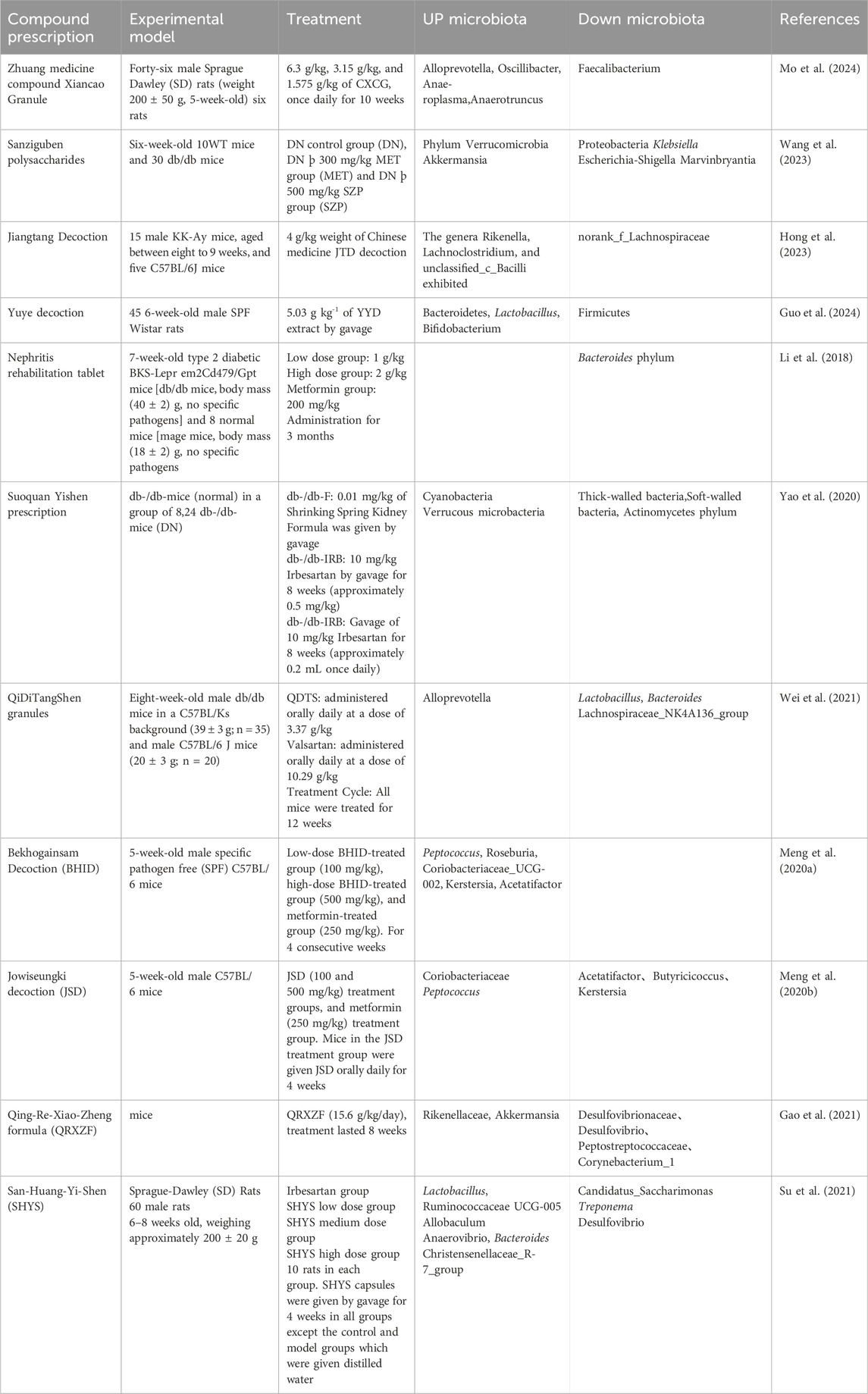 Table 1. Traditional Chinese medicine prescriptions improve DN by regulating the gut microbiota in experiments.