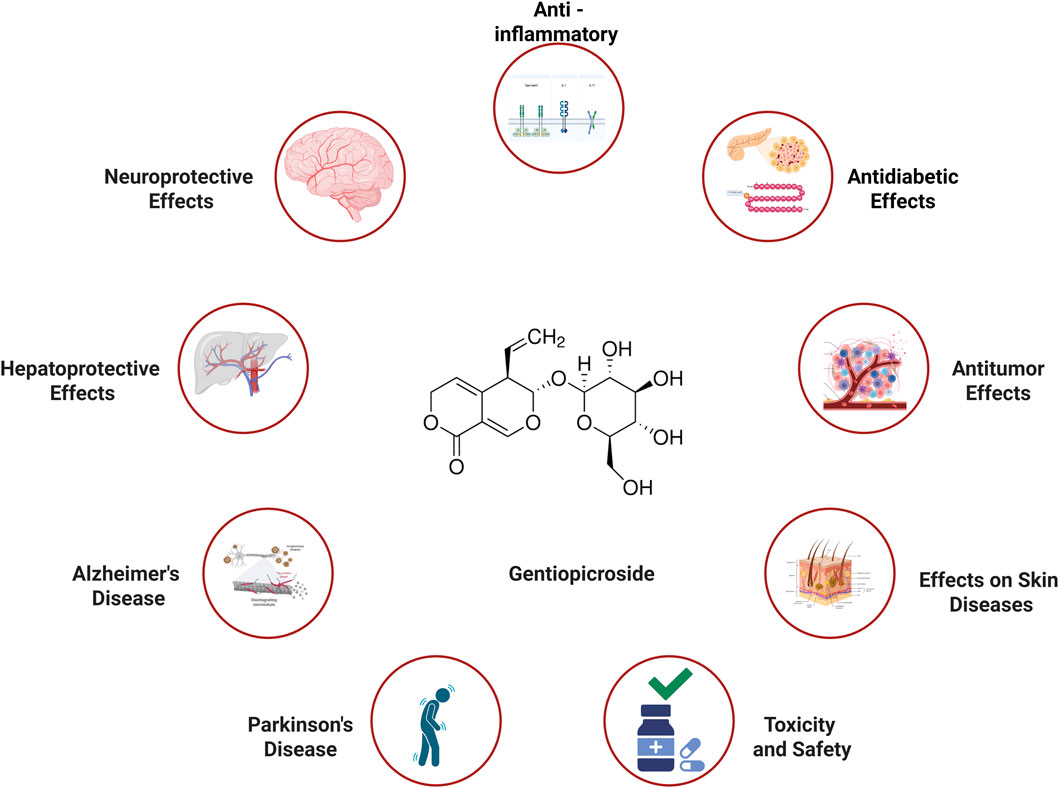Figure 1. Therapeutic effect of Gentiopicroside in various diseases (Created with Biorender.com).