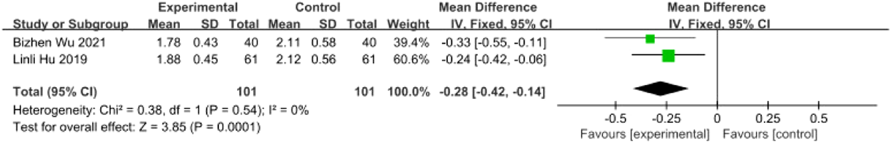 | Yu and Qiu (2023) | 2023 | 40/40 | 54–77/53–77 | 30 days | ⑥⑪ ⑬ ⑭ | Acupoint application + rehabilitation | Rehabilitation | Acupoint application + rehabilitation | Unspecified | Asari Radix et Rhizoma, Aconiti Lateralis Radix Praeparata, Pinelliae Rhizoma, Arisaematis Rhizoma Preparatum, Borneolum Syntheticum, Fritillariae Cirrhosae Bulbus |