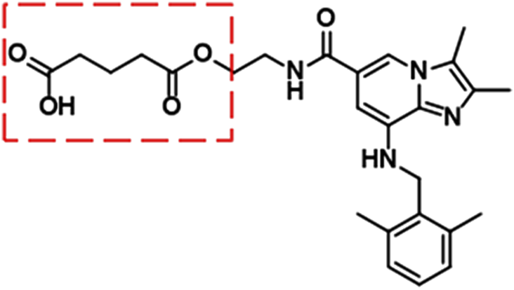 Chemical structure of X842. As a prodrug of linaprazan, X842 was esterified with glutaric acid and contained a free hydroxyl group.
