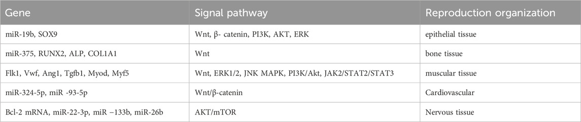 Table 1. Adipose-derived stem cell exosomes promote the regeneration of various tissues by regulating related genes and signaling pathways.