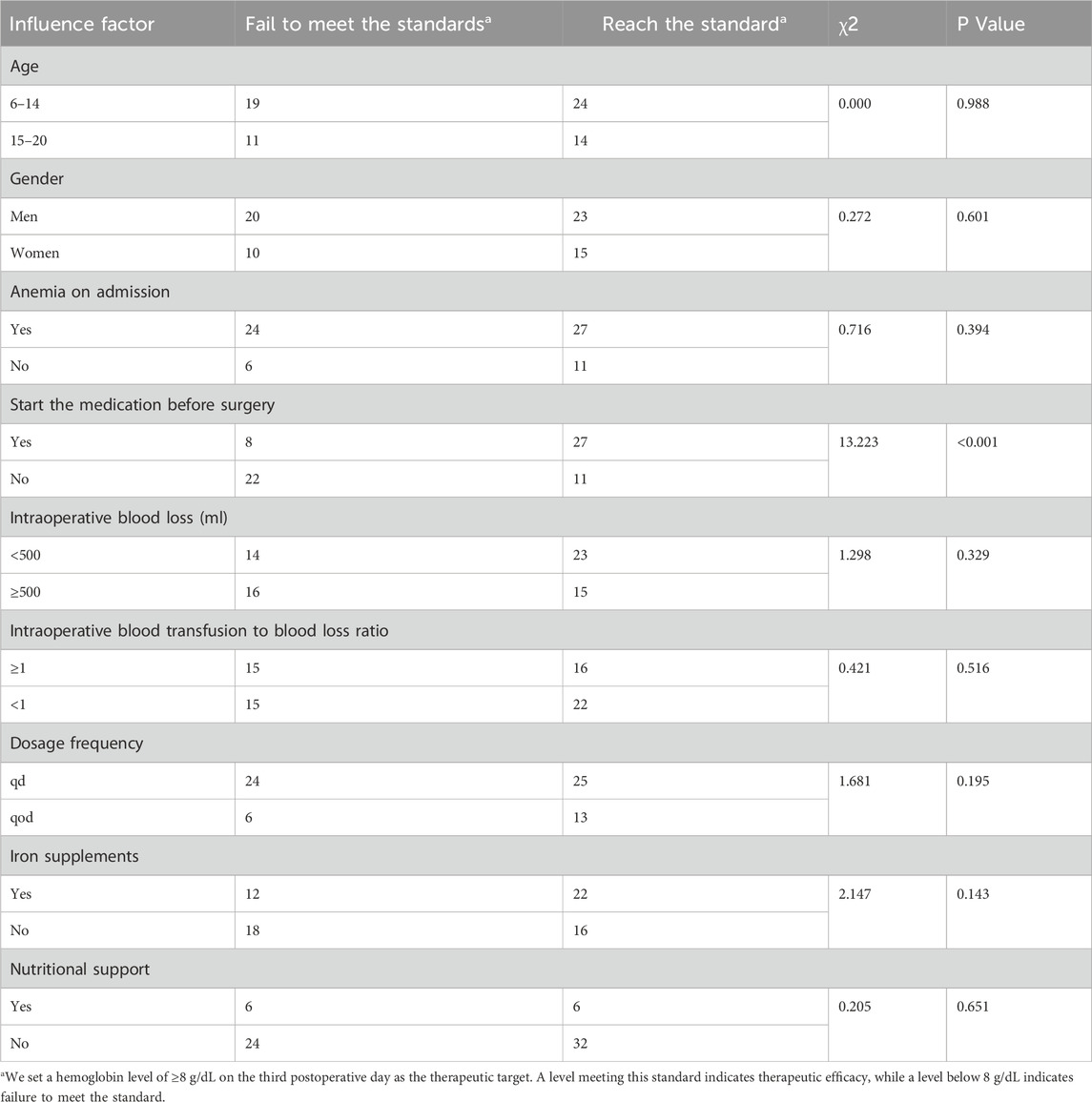 3.2.2 Factors influencing the efficacy of anemia treatment