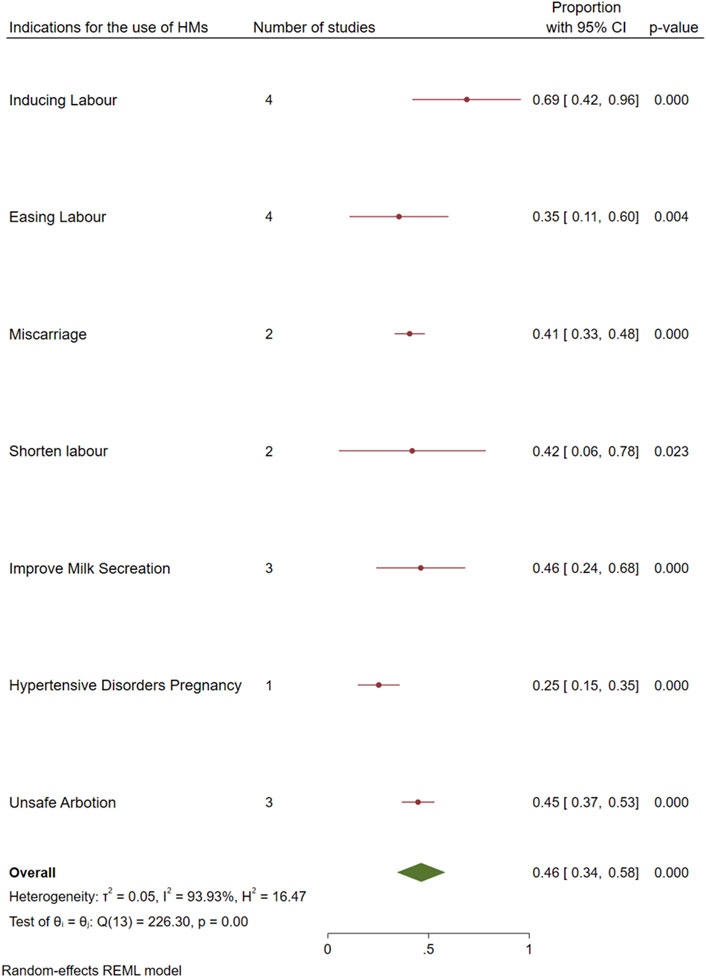 3.3 Pooled prevalence of HMs use for maternal conditions