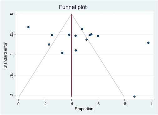 Figure 9. Funnel plot of the results of the prevalence of medicinal herbs use for maternal conditions.