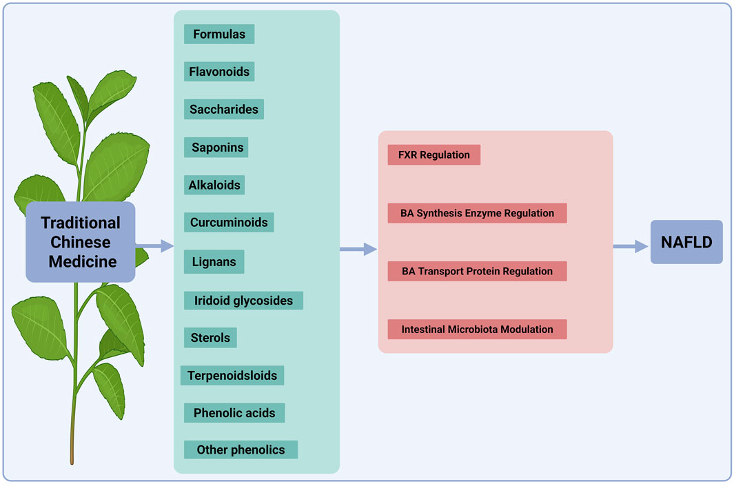 Although these TCM formulas demonstrated clear efficacy in ameliorating NAFLD, the interpretation of their underlying mechanisms frequently presented seemingly contradictory phenomena, such as both the activation and inhibition of FXR. This inconsistency primarily stemmed from the inherent complexity of the TCM formulas and the limitations of the experimental designs. On one hand, the multi-metabolite, multi-target nature of these formulas meant that their various chemical metabolites could exert synergistic or antagonistic effects on the same pathway, leading to complex regulatory outcomes in the overall effect. On the other hand, most studies failed to identify the core active metabolites. Consequently, their mechanistic explorations were largely confined to correlational analyses of the gut microbiota, BAs, and pathway protein expression, and lacked causal confirmation experiments such as gene knockouts or receptor antagonists. This made it difficult to distinguish whether the observed effects were due to the holistic action of the formula or the direct action of specific metabolites. Furthermore, variations in animal models, including strain differences and modeling methods, also contributed to divergent pathway regulation. Therefore, the mechanistic contradictions observed were essentially a reflection of the transitional challenges that arise when applying relatively simplified research paradigms to dissect a highly complex system. Future research needs to delve into the level of individual active metabolites and incorporate more rigorous causal experiments to reveal a unified and definitive mechanistic logic.