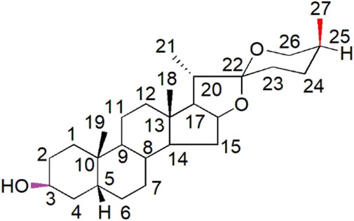 Mustafa, N. H., Sekar, M., Fuloria, S., Begum, M. Y., Gan, S. H., Rani, NNIM, et al. (2022). Chemistry, biosynthesis and pharmacology of sarsasapogenin: a potential natural steroid molecule for new drug design, development and therapy. Molecules 27 (6), 2032. doi:10.3390/molecules27062032