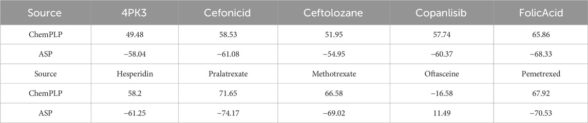 Figure 2. Results of the analysis of the binding forces for the top-performing compounds, based on ChemPLP and ASP evaluation functions.