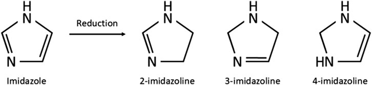 Figure 1. Chemical structure of imidazole and the imidazolines produced through reduction of imidazole.