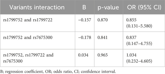 Table 11. Variant interaction analysis between ACE, BDKRB2, and KCNIP4 variants.