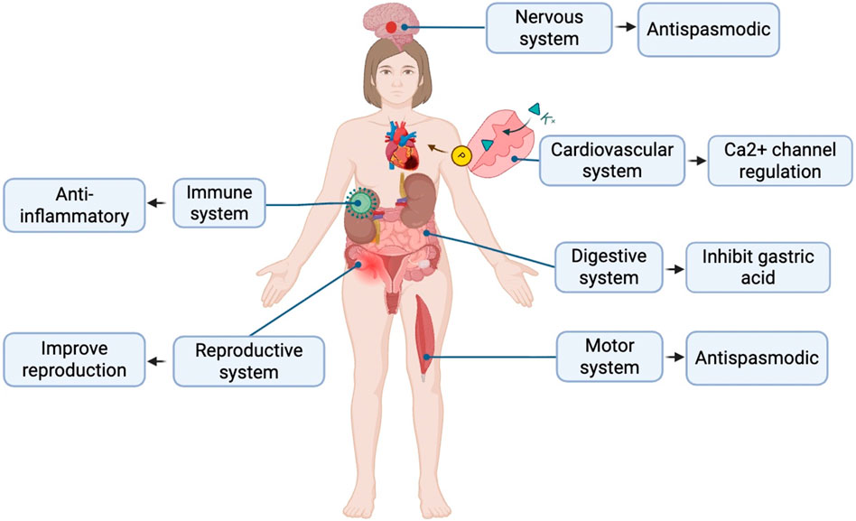 The above mechanisms are correlated with the analgesic effects and the treatment of digestive, skeletal and renal system diseases discussed in sections 3.1, 3.2, 3.6 and 3.7.