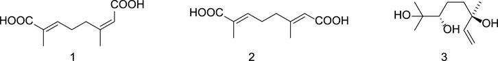 Sesterterpenoid compounds found in gentians are similar in scarcity to monoterpenoids. Liu et al. identified the sesterterpenoid pranferin from a methanol extract of G. scabra Bunge. (Liu, 2004). Specific information on sesterterpenoid constituents from Gentiana can be found in Table 3 and Figure 3.