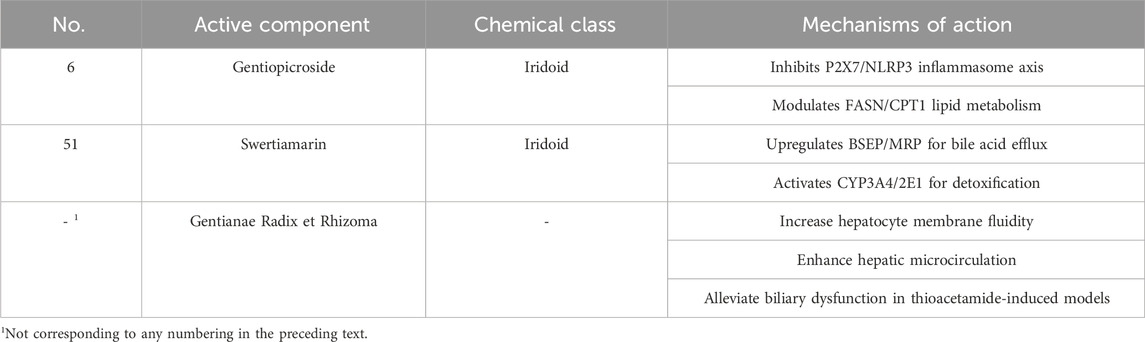 Table 10. Hepatoprotective and Choleretic compounds in Gentianae Radix et Rhizoma: Bioactive components and mechanisms of action.