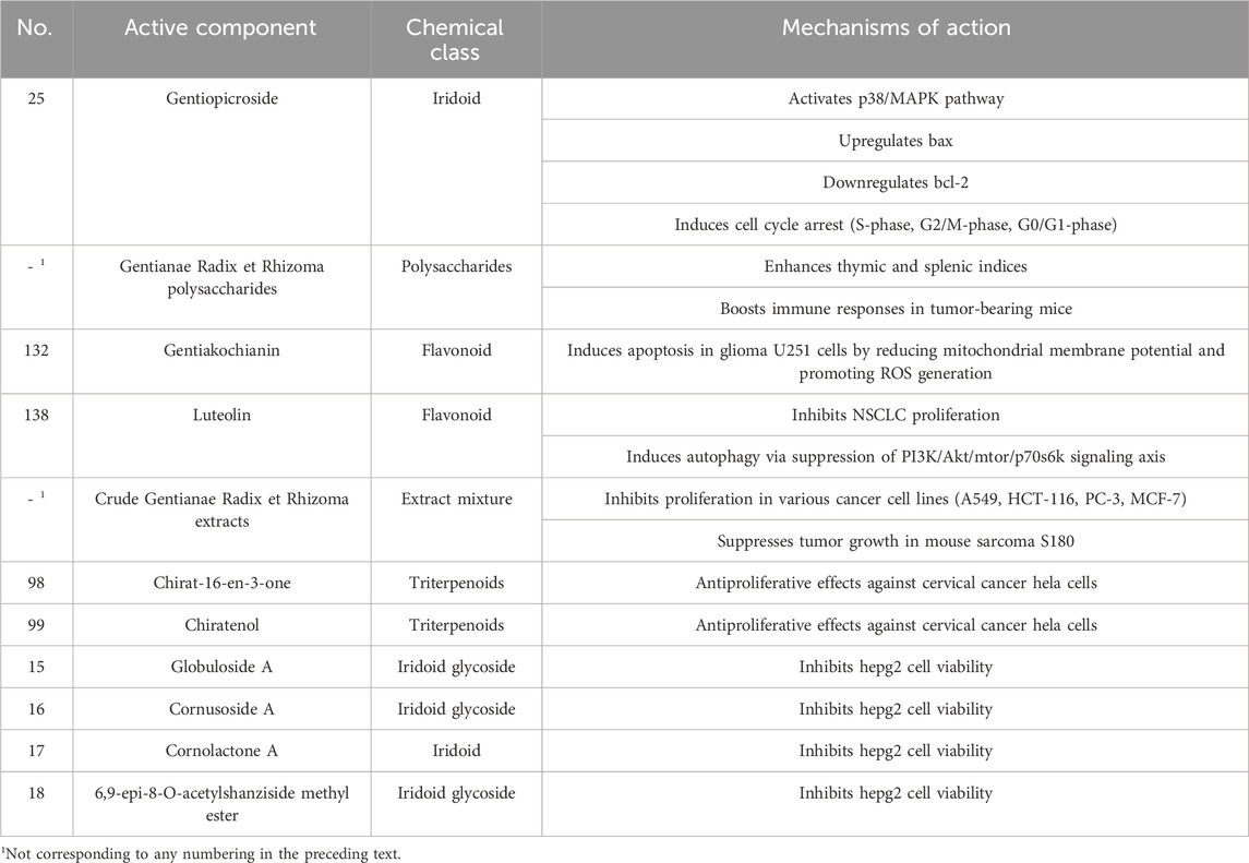 Table 11. Antitumor component in Gentianae Radix et Rhizoma: Bioactive components and mechanisms of action.