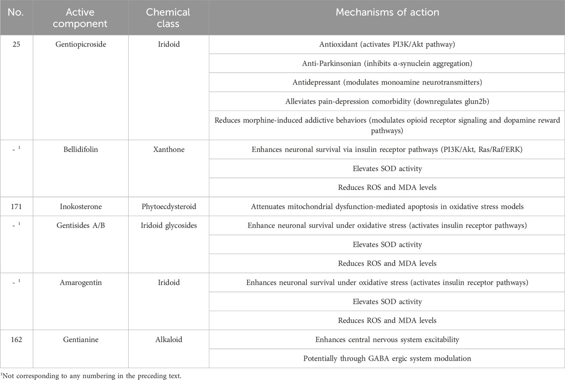 Table 13. Nervous system-Regulating Bioactive compounds in Gentianae Radix et Rhizoma: mechanisms of action.