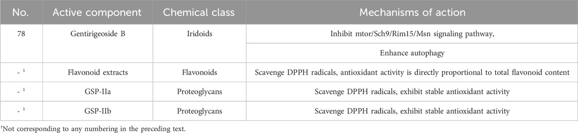 Table 14. Antioxidant component in Gentianae Radix et Rhizoma: Bioactive components and mechanisms of action.