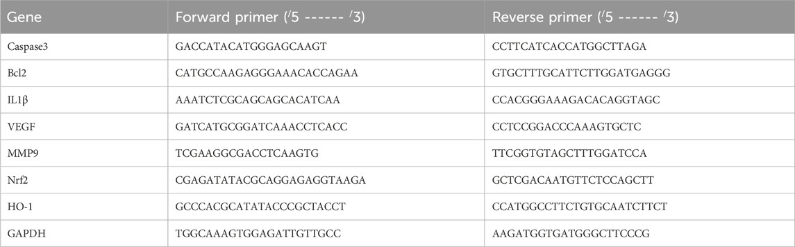 Real-time PCR was used to assess alterations in the relative expression of the caspase3, Bcl2, IL1β, VEGF, MMP9, Nrf2, and HO-1 genes in EAC cells across all groups. Total RNA was first extracted and then reverse-transcribed into cDNA using kits obtained from Thermo Scientific, United States (#K0731 and #EP0451, respectively). Table 1 lists the primer sequences. The 2−ΔΔCT approach was used to evaluate the change in gene expression.