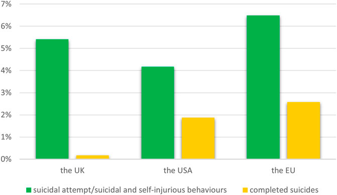 According to data from medical repositories of adverse responses from the United States of America, the European Union (EU) and the United Kingdom, we have shown that among psychiatric disorders after taking montelukast, the % of fatal suicides is 0.17% in the United Kingdom, 1.88% in the United States and 2.57% in the EU (Figure 1).