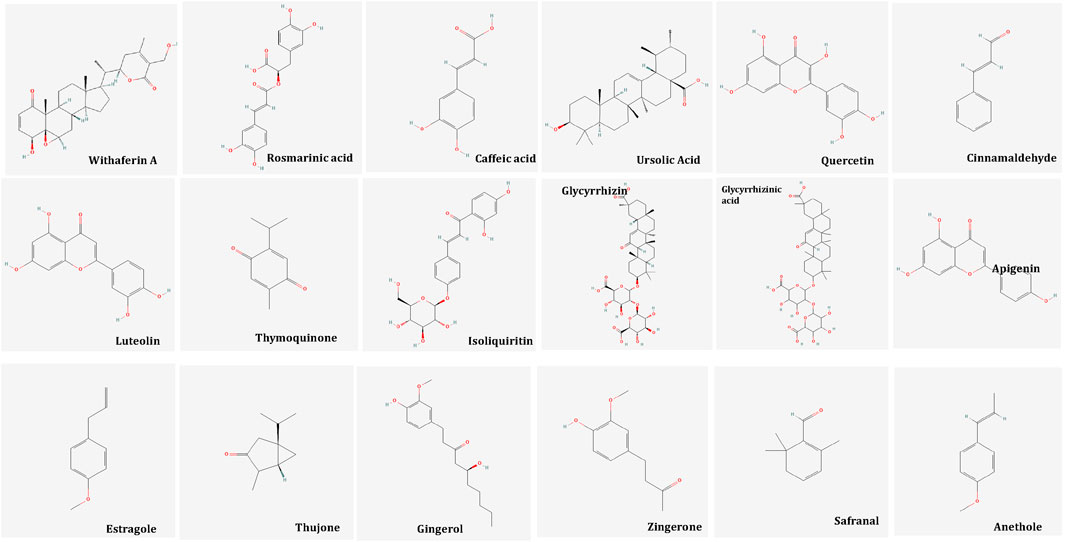 Figure 7. Bioactive Molecules in Unani Botanicals useful in Depression, Anxiety and Stress. Image from Pubchem.