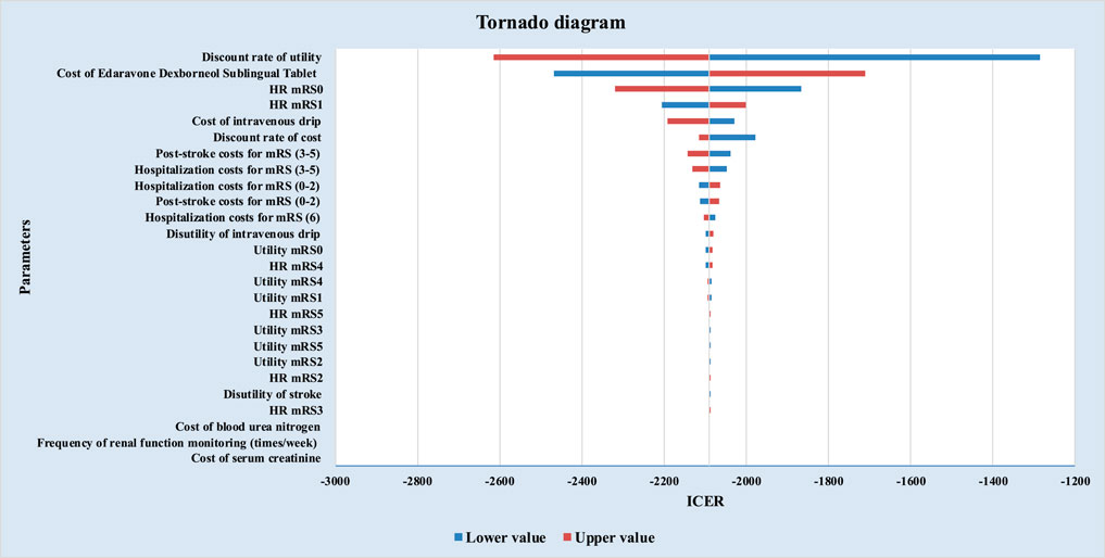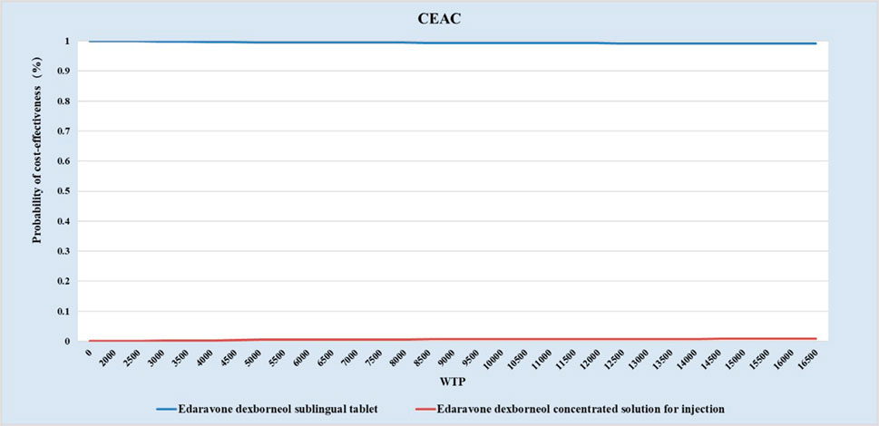 Previous studies have demonstrated that edaravone dexborneol concentrated solution for injection (EDCSI) offers superior cost-effectiveness in the treatment of AIS compared with other cytoprotective therapies such as DI-3-n-butylphthalide, human urinary kallidinogenase, and so on (Chen et al., 2024; Shi et al., 2022; Li et al., 2024). Building upon these findings, the current study showed that EDSL further reduced treatment costs while gaining more QALYs. This not only continues the economic advantages of edaravone dexborneol but also enhances medication convenience and patient adherence through formulation innovation, indicating its potential as a more favorable treatment option for AIS. Moreover, the findings of this study are highly consistent with those of a recent systematic review and meta-analysis. Kashbour et al. (2025) conducted a meta-analysis of five randomized controlled trials (involving 2,535 patients). The results demonstrated that edaravone (ED) treatment significantly increased the proportion of patients achieving functional independence (mRS ≤1) at 90 days in acute ischemic stroke patients. Additionally, the analysis revealed a significant improvement in NIHSS scores at both 30 and 90 days. These findings demonstrate the efficacy and safety advantages of ED-class drugs. Future research could focus on direct economic comparisons between the sublingual tablet and other cytoprotective therapies to inform clinical and reimbursement decisions.