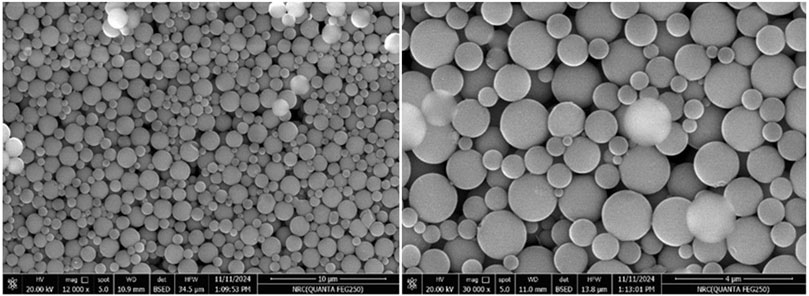 Scanning Electron Microscopy (Figure 2) revealed that the synthesized particles were predominantly spherical with smooth surfaces and a narrow size distribution. The average particle diameter was approximately 1.8 µm.