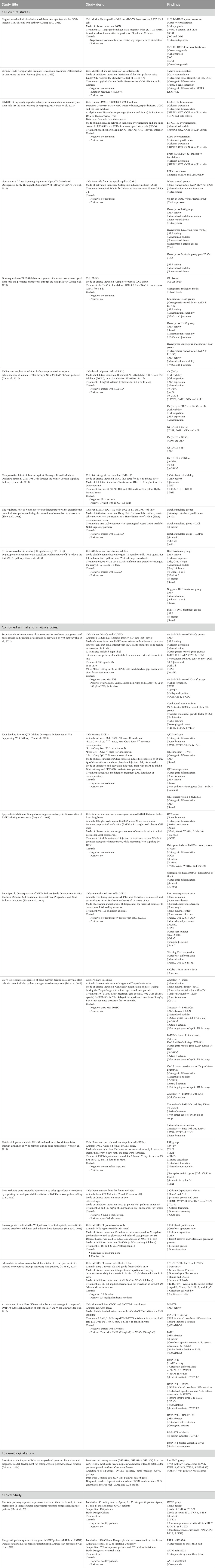 Exogenous interventions demonstrated diverse regulatory effects on bone cells, with most studies focusing on osteoblast differentiation and mineralization, and a smaller subset addressing osteoclastogenesis and bone remodeling balance. Both in vitro models (MC3T3-E1, hFOB1.19, DPSCs, C2C12, ST2, MLO-Y4, RAW264.7, BMMs) and in vivo models (zebrafish, rats, mice) were utilized. Positive controls varied, with some studies using standard comparators such as alendronate sodium, BMP2, or Wnt3a, whereas others relied on vehicle- or untreated-groups [31, 32]. Specificity of Wnt signaling involvement was commonly verified using inhibitors including XAV939, IWP-2, Box5, LDN-193189, Dkk1, and Noggin (Lou et al., 2018; Wang et al., 2018; Liu et al., 2022; Luo et al., 2023; Xing et al., 2025). Despite this heterogeneity, the collective evidence consistently supports Wnt/β-catenin signaling as a convergent mediator of osteoanabolic responses. Importantly, these interventions affected not only osteoblast differentiation but also osteoclastogenesis and OPG/RANKL signaling, thereby reinforcing Wnt’s central role in bone remodeling balance.