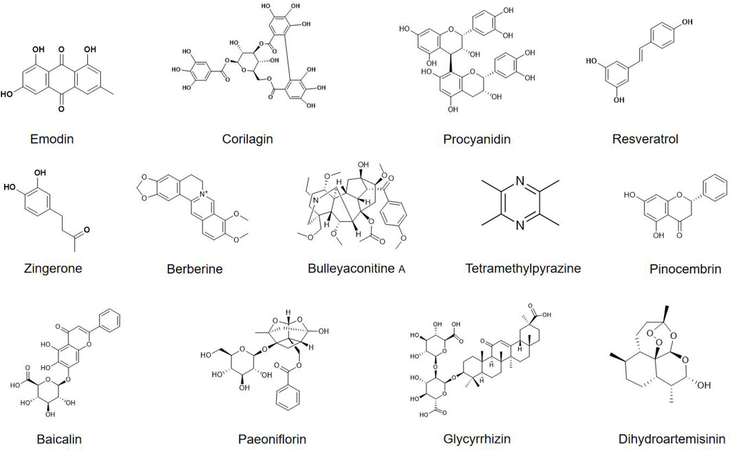 Emodin (C15H10O5) is a natural anthraquinone primarily found in medicinal plants such as Rheum palmatum L. and Reynoutria japonica Houtt. It’s medicinal application history is over 2,000 years (Mitra et al., 2022). Modern pharmacological studies have shown that emodin possesses various bioactivities, including cardioprotective, antitumor, and anti-inflammatory effects (Zheng et al., 2021). Li et al. predicted a potential interaction between emodin and TLR4 through molecular docking and confirmed in BV2 microglial cells that emodin can block the TLR4/MyD88/NF-κB signaling pathway, inhibiting NLRP3 inflammasome activation, thereby reducing morphine-induced neuroinflammation (Li et al., 2024). However, these findings at the cellular level still need further validation in animal models.