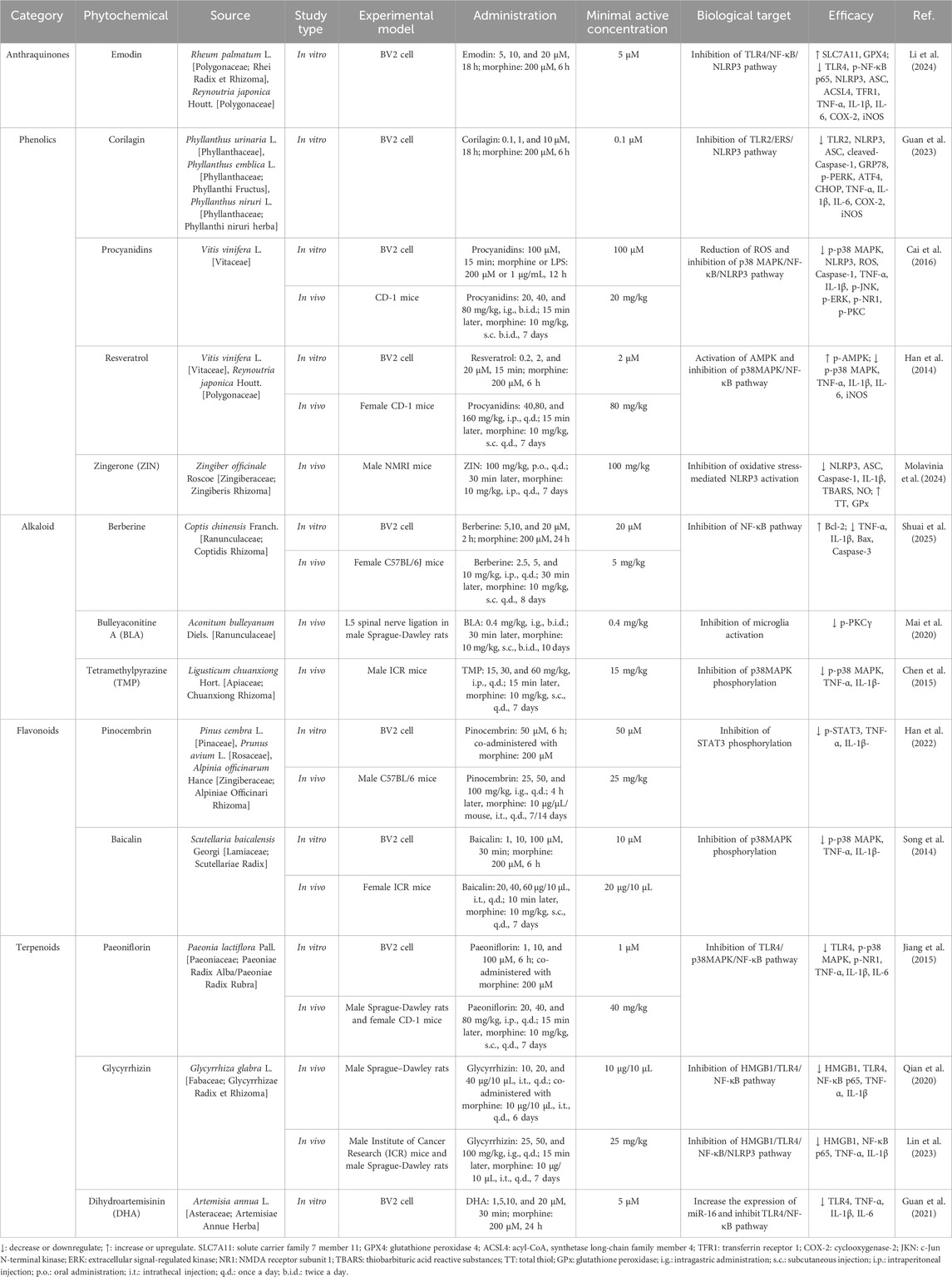 Table 1. Phytochemicals alleviate morphine tolerance by regulating microglia-mediated neuroinflammation in preclinical studies.