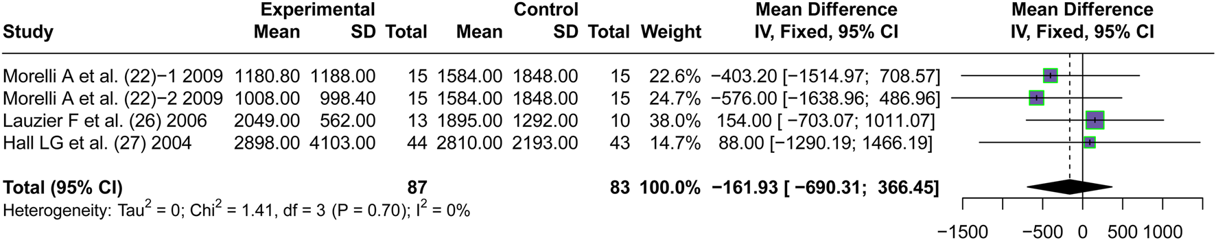 Forest plot of pooled MDs of days free of RF. “Experimental” represents “vasopressin,” while “control” represents “norepinephrine.” RF, renal failure; MD, mean difference.