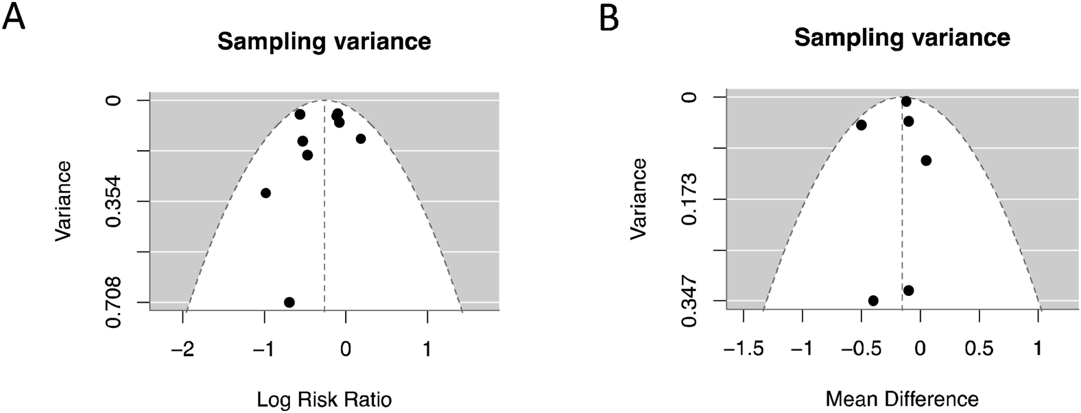 The “funnel” function of the “meta” package was used to perform publication bias analysis on the effect sizes of the outcomes, presented in a funnel plot.