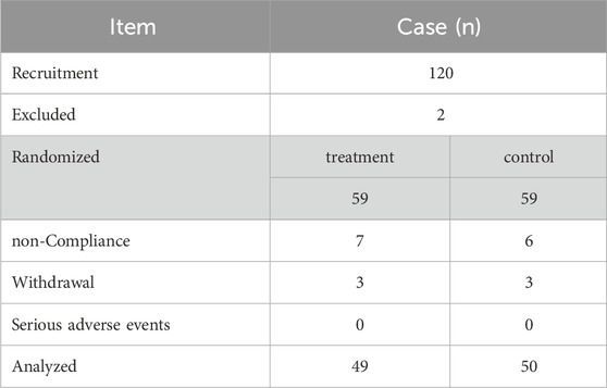 The shedding criteria were as follows: 1) failure to meet inclusion criteria or incomplete information; 2) non-compliance with prescribed medications after inclusion; 3) voluntary withdrawal from the clinical trial; and 4) occurrence of serious adverse events (e.g., complications, significant allergic reactions, comorbidities, and specific physiologic changes; Table 1).
