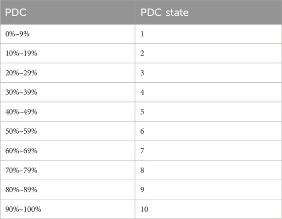 Subsequently PDC was transformed to an ordinal scale according to Table 1, to allow the use of first-order proportional odds Markov transition model.