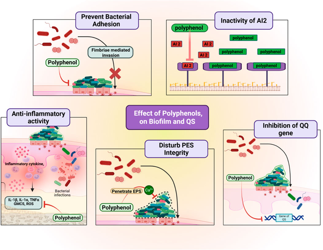 Polyphenols in biofilm disruption and quorum sensing inhibition