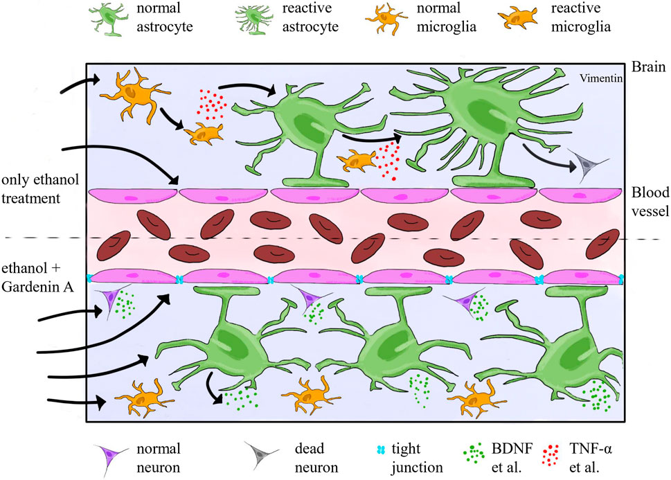 Keywords: alcohol-induced neuroinflammation, herbal therapeutics, gardenin A, blood-brainbarrier, TNFα