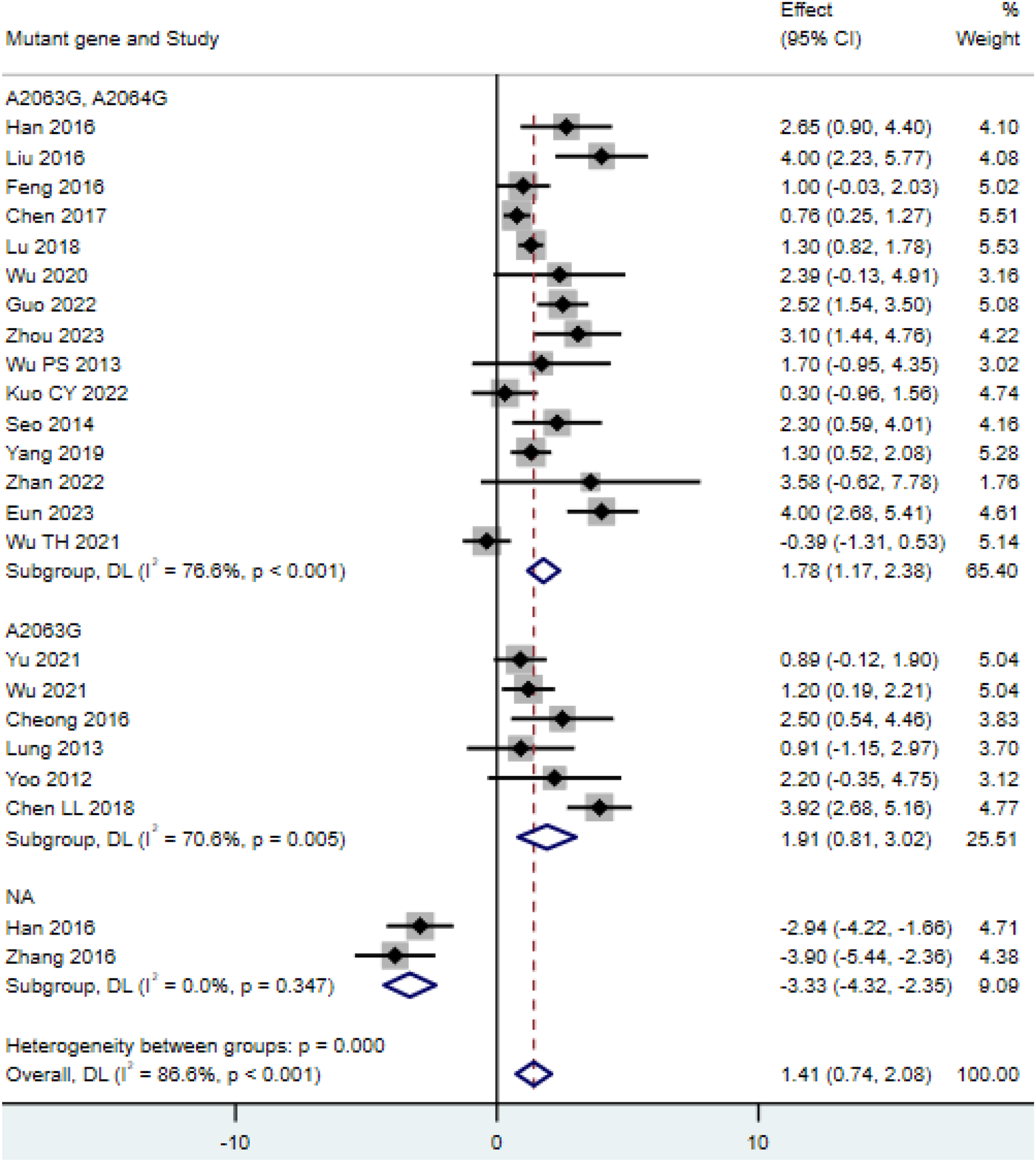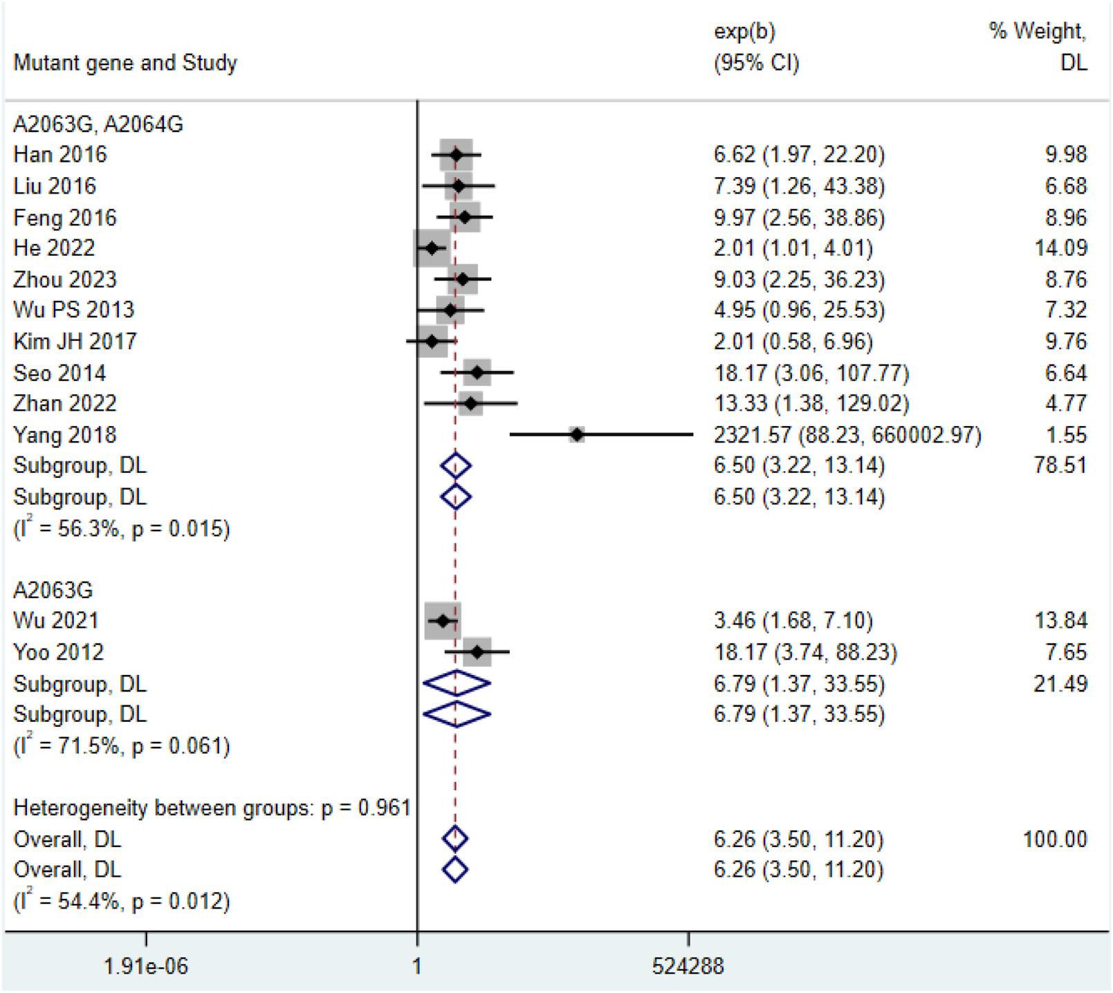 | Wu and Cai (2021) | China | PCR, AST | A2063G | 2016–2019 | 214 | 9 | Child |