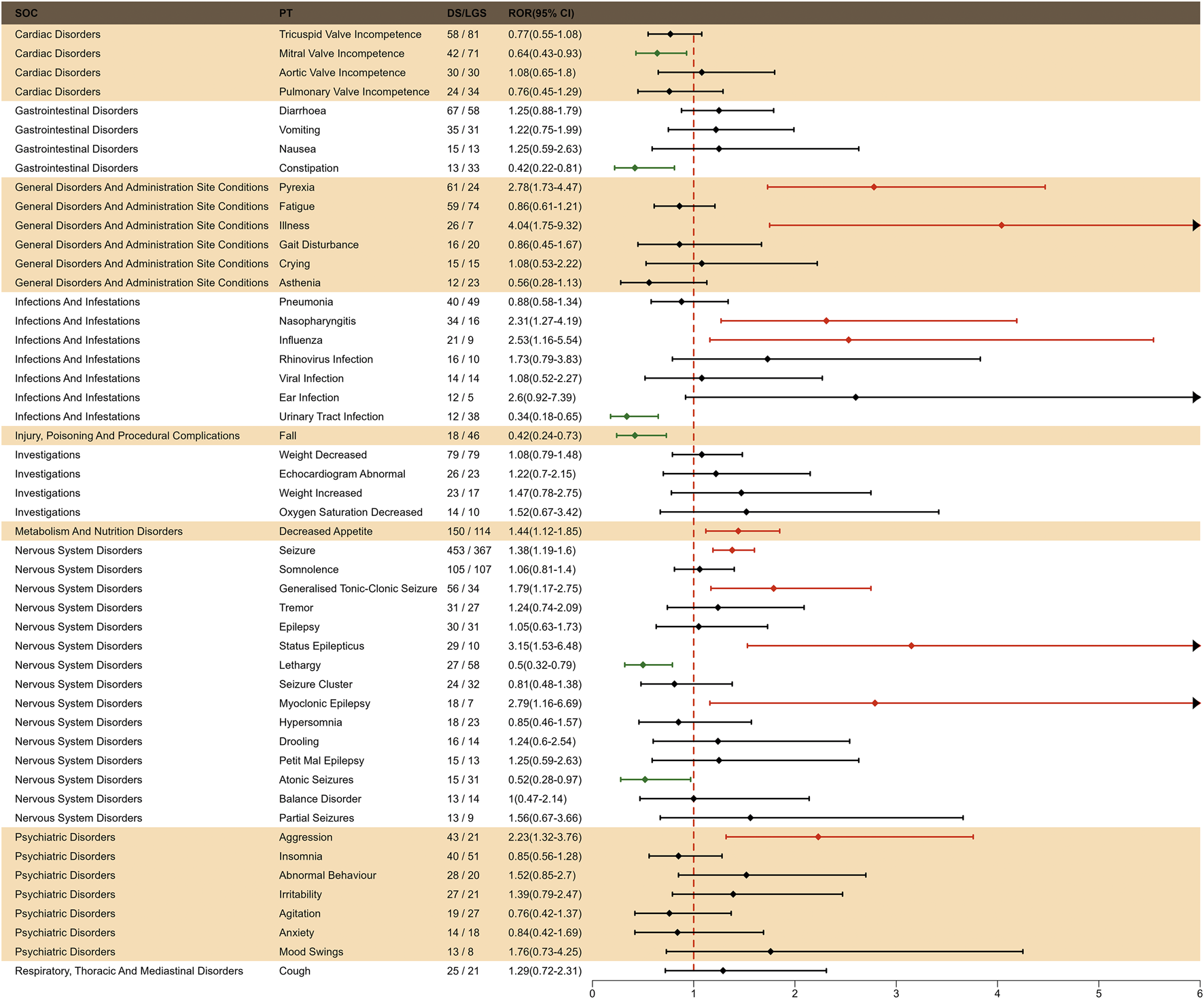 • DS patients are more likely to experience AEs related to the neurological system, whereas LGS patients are more likely to experience cardiac AEs following fenfluramine medication.