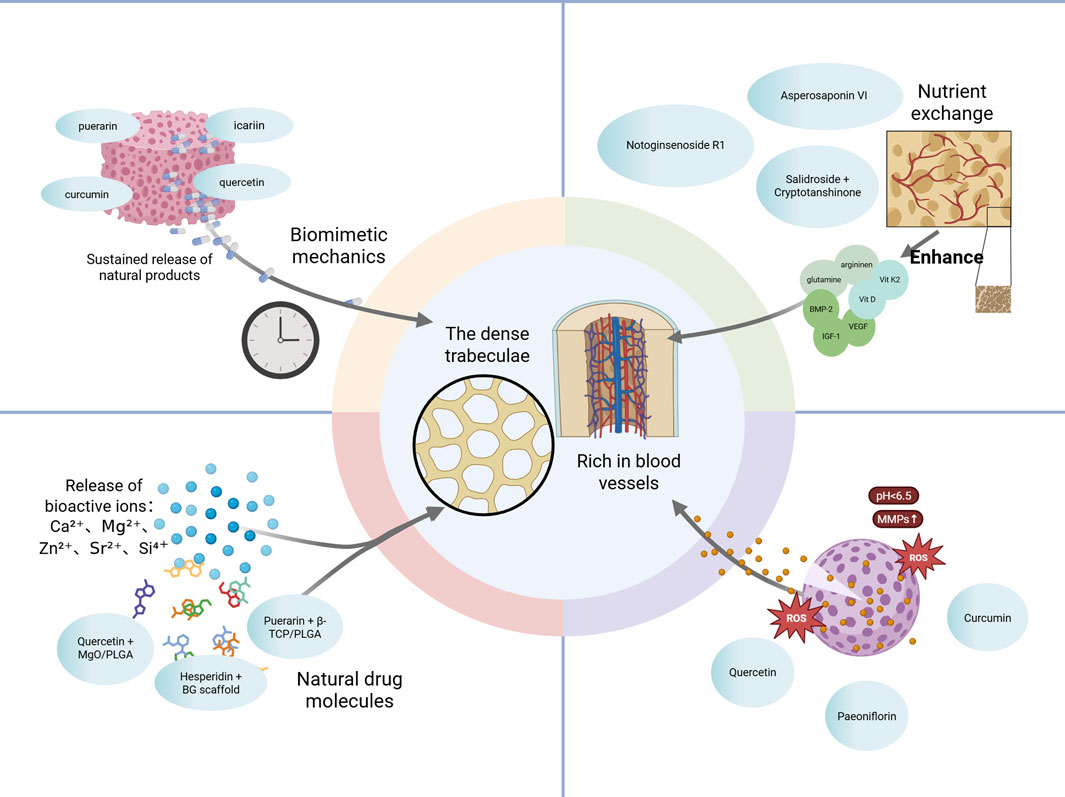 Through multi-pathway and multi-target modulation, natural products hold considerable promise in restoring bone tissue homeostasis, enhancing regenerative capacity, and expanding their applicability in bone tissue engineering and regenerative medicine. These findings collectively provide a theoretical framework and technical basis for the development of safer, more effective, and clinically translatable therapeutic strategies for osteoporosis.