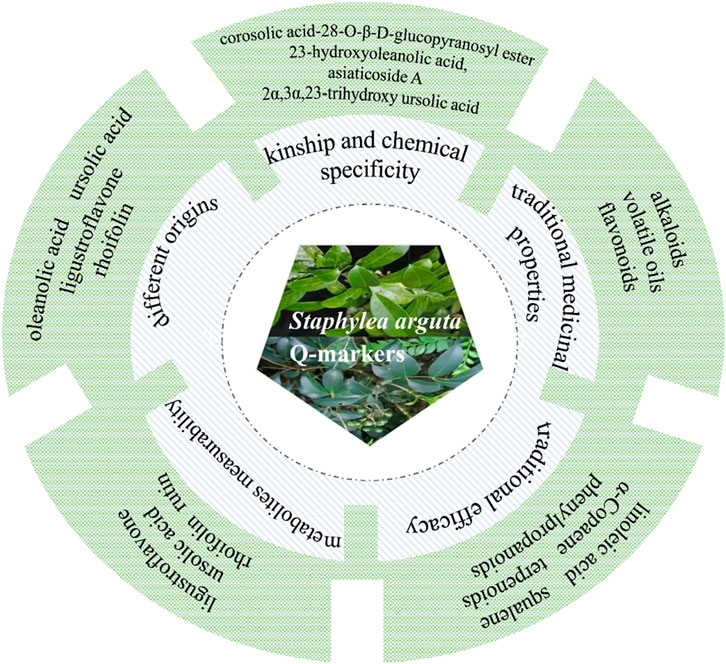 Methods: The metabolites and pharmacological activities of Staphylea arguta were reviewed using data retrieved from scientific databases, including PubMed, Web of Science, and China National Knowledge Infrastructure (CNKI). The “five principles” of TCM Q-markers, which include kinship and chemical specificity, traditional medicinal properties, traditional efficacy, metabolites measurability, and different origins, were applied to identify potential candidates for Staphylea arguta.